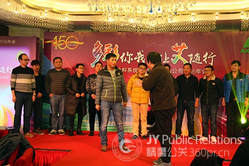 | 活動(dòng)效果: | 年會(huì)在主持人的激昂開場(chǎng)詞中拉開了序幕,艾仕得領(lǐng)導(dǎo)也對(duì)本次年會(huì)和所有的員工送出了美好的祝福。接著領(lǐng)導(dǎo)與員工的演出,更好的表達(dá)了對(duì)公司來年的愿景。此次年會(huì)可謂是高潮不斷、驚喜不斷,領(lǐng)導(dǎo)秀、員工秀、禮品秀,最后在一首(難忘今宵)中劃上了完美的句號(hào)。此次年會(huì)的內(nèi)容全部由精鷹公關(guān)策劃 |