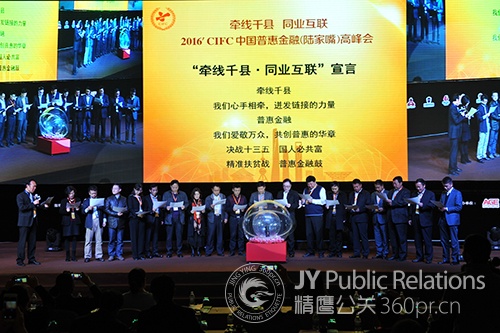 | 活動介紹: | 2016年3月18日上午9點(diǎn),“牽線千縣·同業(yè)互聯(lián)”2016’CIFC中國普惠金融(陸家嘴)高峰會在中國第一、世界第二高樓——上海中心大廈二樓隆重召開。 |