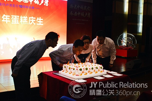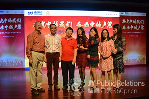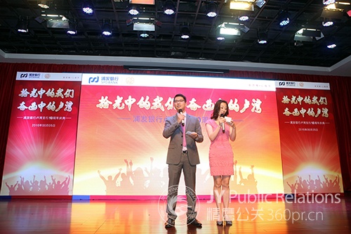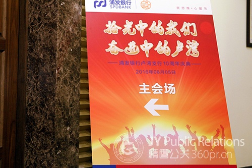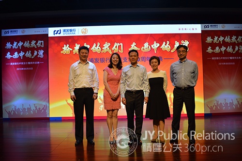 浦發(fā)銀行上海分行 盧灣支行十周年慶典 活動(dòng)地點(diǎn): 上海盧灣區(qū)文化活動(dòng)中心 活動(dòng)時(shí)間: 2016.06.05 活動(dòng)介紹: 浦發(fā)銀行盧灣支行十周年活動(dòng)在宣讀分行賀信、老員工致謝儀式、員工代表發(fā)表感言等儀式形式中開啟。 活動(dòng)效果: 本次活動(dòng)由精鷹公關(guān)全程策劃執(zhí)行!