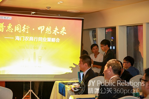 | 活動效果: | 此次同業(yè)交流會取得了良好的品牌宣傳和業(yè)務(wù)推介效果,為海門農(nóng)商銀行拓展同業(yè)渠道、深化同業(yè)合作、加快金融市場業(yè)務(wù)轉(zhuǎn)型奠定了堅實基礎(chǔ)。本次活動由精鷹公關(guān)全程策劃執(zhí)行! |