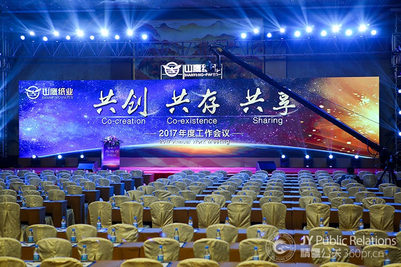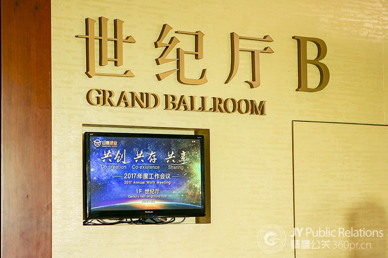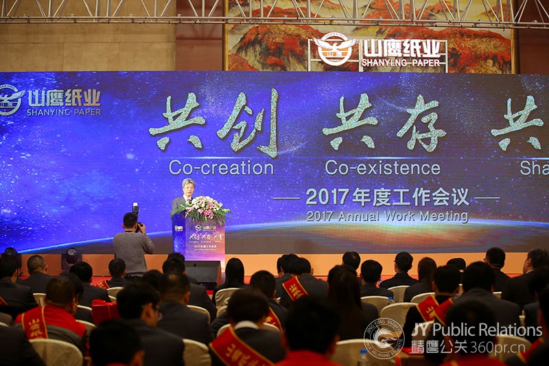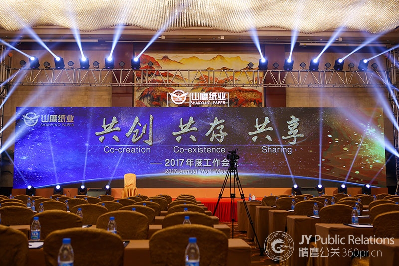 山鷹紙業(yè)2017年度工作會議 活動地點:江蘇市金雞湖大酒店 世紀廳活動時間:2017.01.23活動介紹:共創(chuàng) 共存 共享活動效果:本次活動由精鷹公關(guān)全程策劃執(zhí)行!