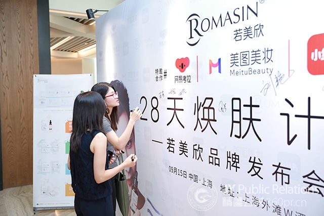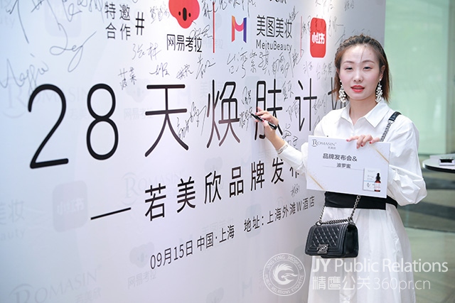 活動介紹:該發(fā)布會由精鷹公關(guān)團隊全程參與策劃落地, 若美欣“28天煥膚計劃”品牌發(fā)布會在滬舉行,這也是若美欣創(chuàng)品后第一次正式面向公眾。創(chuàng)意亮點為本次發(fā)布會主題“28天煥膚計劃”,意喻在皮膚更替周期28天內(nèi),讓自己成為一個更明媚光彩的自己。