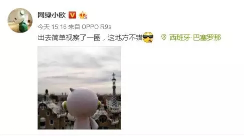 網(wǎng)綠小歐的微博基本是一個(gè)小公舉游玩西班牙的旅行日記!