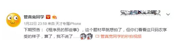 而管真寬同學(xué)是在不遺余力的拍短視頻,主題基本一致:碼農(nóng)--程序員的苦逼生活。