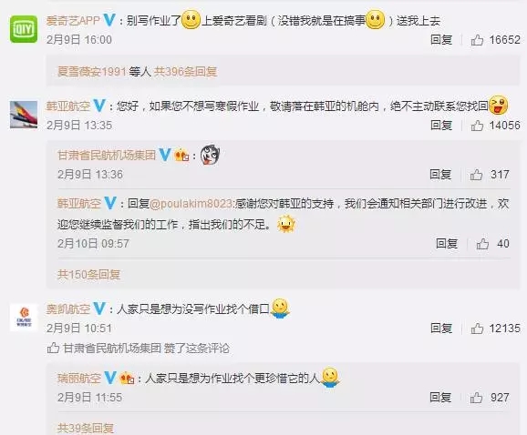 微博轉(zhuǎn)發(fā)6萬(wàn)+,評(píng)論近4萬(wàn)條,并引起其他航空公司圍觀。從此一個(gè)名不見經(jīng)傳的“三級(jí)”航空公司坐實(shí)航空界的地位,成為實(shí)力藍(lán)V。