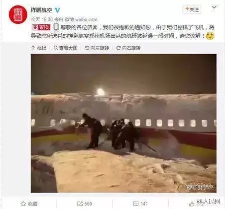 “替寫作業(yè)”事件后,因?yàn)橐粓?chǎng)大雪,另一家航空公司祥鵬航空便自制了段子,說(shuō)雪太大,不小挖錯(cuò)了飛機(jī)......