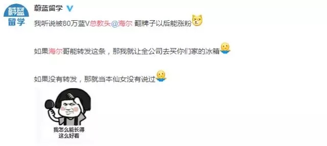 不專心賣冰箱,反而專心幫娃取名、替迷妹追星、介紹情緣、幫忙招聘等等等等,但其中最關(guān)鍵的是IP跨界合作,帶著其他藍(lán)V一起玩。所以眾人拾木火焰高,形成了以海爾為首的藍(lán)V團(tuán)體,而以上掌門人其實(shí)都是他的坐下客,故可以經(jīng)??吹竭@樣的畫風(fēng):