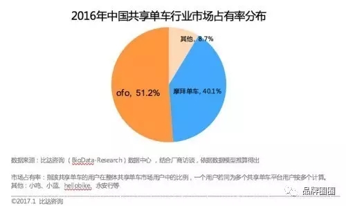 時至今日,ofo和摩拜已經(jīng)進行了近半年的斗爭了,究竟誰會最終勝出,目前還很難下定論。ofo在社交平臺上的聲量表現(xiàn)更好,并且在2016年其市場份額也大于摩拜: