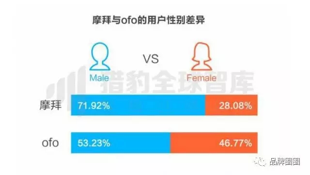 用摩拜的女生比例明顯低于ofo,畢竟女生更柔弱嬌嫩嘛,當然更喜歡省力的ofo! 2333