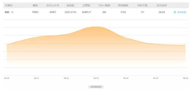 從過去7天的趨勢查詢可以看出,在新華社公號小編的助攻下,微信上對“剛剛”的使用迎來一個小高峰,隨后逐漸趨于常態(tài)?!皠倓傁怠笔侵冈跇祟}開頭加上一些提示詞,來表明這是新鮮出爐的快訊,通常用于具有時效性的文章標題中。