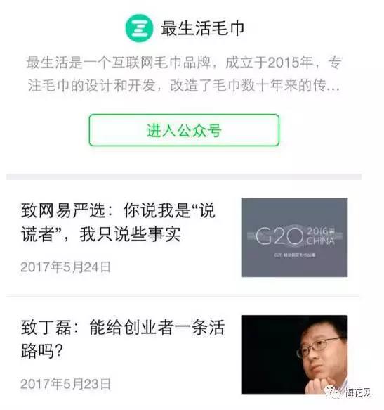 5月23日,“最生活毛巾”發(fā)布了一篇公關(guān)檄文,《致丁磊:能給創(chuàng)業(yè)者一條活路嗎?》,人稱“毛巾哥”的創(chuàng)始人控訴網(wǎng)易嚴選的一款毛巾產(chǎn)品侵權(quán)。毛巾哥表示,網(wǎng)易嚴選違規(guī)侵權(quán)使用“G20專供”字眼描述產(chǎn)品。
