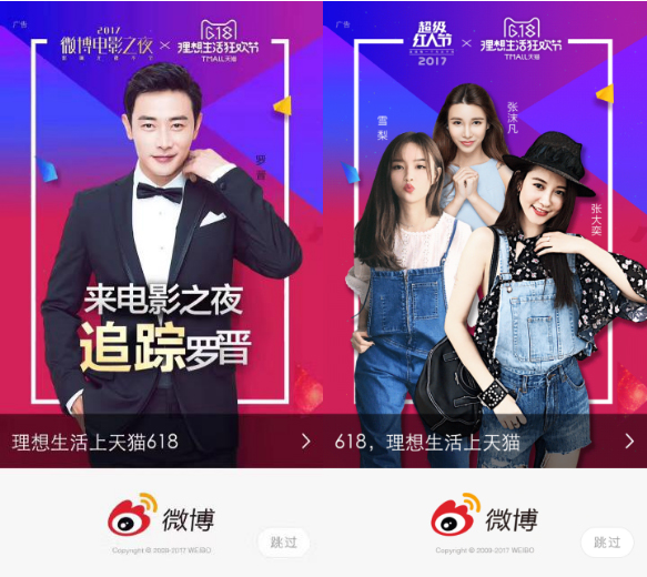 最后天貓聯(lián)合超級(jí)網(wǎng)紅節(jié),攜手三大網(wǎng)紅定制開機(jī)報(bào)頭,超30位網(wǎng)紅發(fā)布微博引流;電影之夜也參與到聯(lián)動(dòng)中,以明星海報(bào)作為核心入口,超30位明星發(fā)博參與擴(kuò)散,將"天貓理想生活狂歡節(jié)"的聲量進(jìn)行最后井噴式的引爆,為這場(chǎng)零售狂歡的驚艷大數(shù)據(jù)打下堅(jiān)實(shí)基礎(chǔ)。