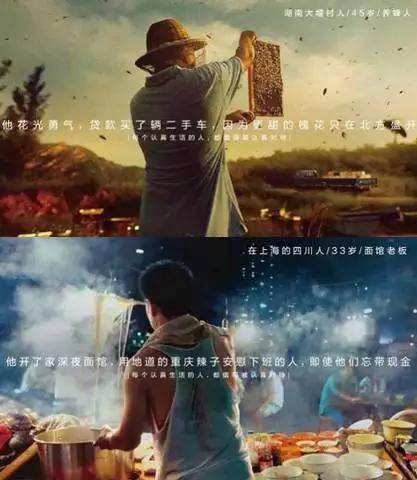 螞蟻金服在一組品牌海報中,就通過講故事的方式,勾勒出一群形象各異的用戶形象,45歲的養(yǎng)蜂人、33歲的面館老板,文案通過“更甜的槐花”、“地道的重慶辣子”等細節(jié)文案,讓人物形象和故事變得真實起來。