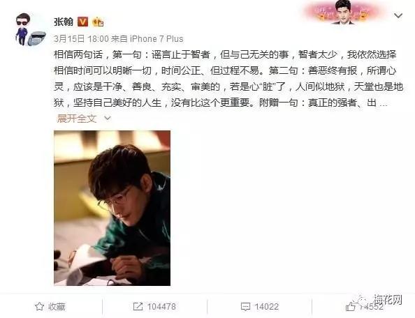 隨后張翰本人也在微博上澄清,成效并不大,大多數網友都認為彭于晏將頂替張翰。