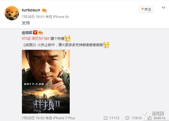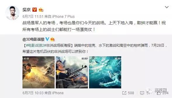 電影要火,營銷號的炒作少不了,《戰(zhàn)狼2》上映后一系列的營銷號就開始了助推。