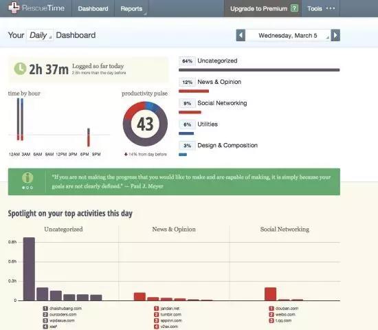 例如上圖中的「rescuetime」,你可以根據(jù)自己的需求簡(jiǎn)單的設(shè)置,你一點(diǎn)開(kāi)非生產(chǎn)力的網(wǎng)站,它就會(huì)自動(dòng)幫你屏蔽,一次設(shè)置終身有效,關(guān)機(jī)都沒(méi)用。