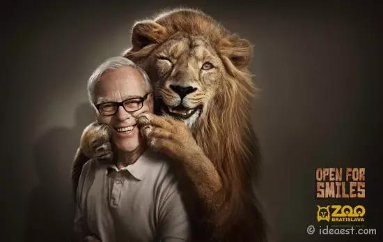 比如斯洛伐克的動(dòng)物園廣告片。萌萌的動(dòng)物能讓人心情愉悅,但它沒有用大字報(bào)的形式直白地去說(shuō),而是制作了一組圖片,憨態(tài)可掬的動(dòng)物讓各種各樣的人“強(qiáng)顏歡笑”,這就立刻把人帶入了一個(gè)妙趣橫生、浮想聯(lián)翩的場(chǎng)景中去了,原來(lái)動(dòng)物園是個(gè)“歡樂”的好去處。