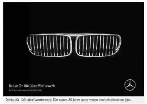 很多人曾被奔馳和寶馬的兩張圖片刷屏。寶馬100周年之際,它的老對(duì)手奔馳上送上了祝福:“感謝100年的競(jìng)爭(zhēng)!沒有寶馬的那30年,是有點(diǎn)兒無(wú)聊!”而寶馬也以同樣的圖片回?fù)簦骸熬椅瓷?,我生君已老?!笨梢哉f(shuō)這場(chǎng)互撕大戰(zhàn)讓他們著實(shí)火了一把。